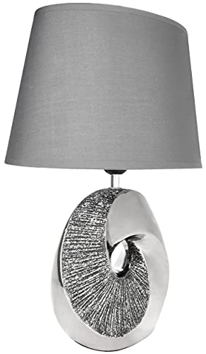 BRUBAKER Set di 2 Lampade da Tavolo o da Comodino Silver Stone Ring - Lampade da Tavolo Moderne con Base in Ceramica - Altezza 42,5 cm, Grigio Cromo