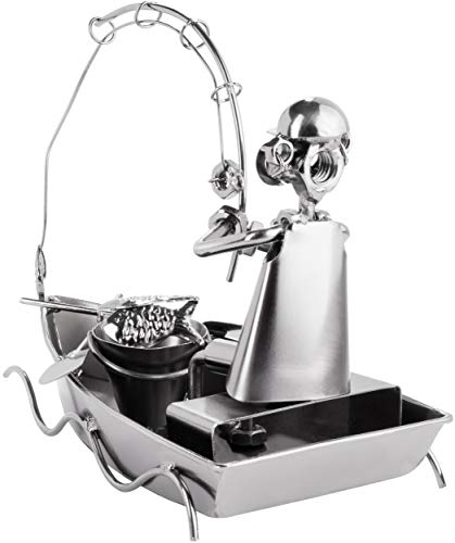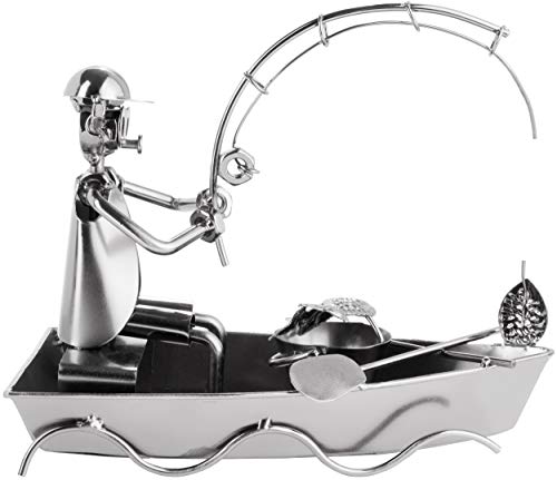 Brubaker Vite Uomo Pescatore in Barca - Figura Artigianale in Ferro Uomo di Metallo Fishing - Idea Regalo in Metallo per Pescatori e Pescatori