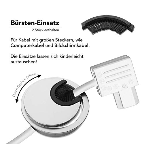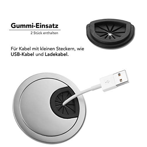 BRUCE.® Premium Passacavi Scrivania [2 Pezzi] in metallo - Tappo Passacavi Per Scrivania ø 60 mm - Passacavo incl. 2 x passaggi in gomma - Per più ordine sulla scrivania del posto di lavoro