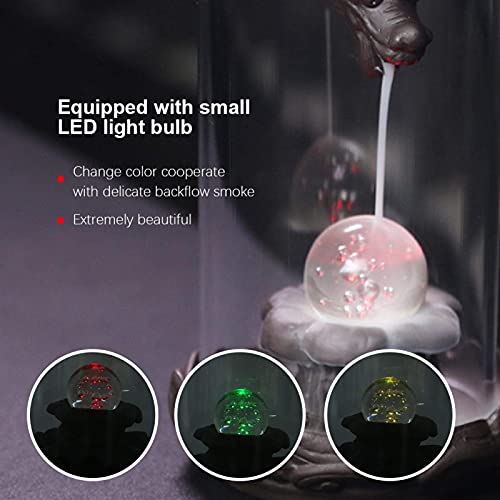 【Design unico】: bruciatore incenso cascata è dotato di piccole lampadine a LED, che possono cambiare colore e il fumo è morbido e molto rinfrescante. Il fumo cadrà come una cascata, creando un'atmosfera suggestiva e un rilassante effetto fontana. coni incenso riflusso forma è elegante e delicata, la lavorazione è eccellente e il rubinetto è splendidamente scolpito e piacevole alla vista.