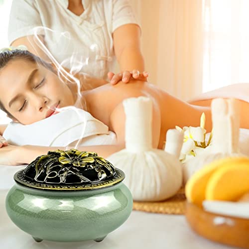 Bruciatore di Incenso in Ceramica, Incensiere a Carbone in Porcellana, Rotondo e Coperchio Portaincenso, Bruciatore per Incenso in Ceramica per Il Relax, Yoga e La Meditazione(Verde)