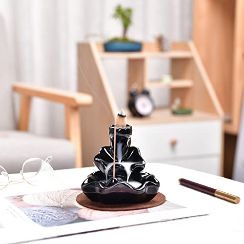 Bruciatore di incenso a flusso inverso, realizzato a mano, porta incenso per casa, ufficio, camera da letto, decorazione, per yoga, con 20 coni in omaggio (foglia di loto)