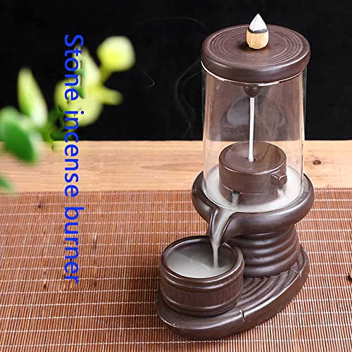 Bruciatore di incenso: il bruciatore di incenso a cascata può essere utilizzato in combinazione con bruciatore di incenso a reflusso e bastoncino di incenso. Design in pietra con copertura in vetro antivento.