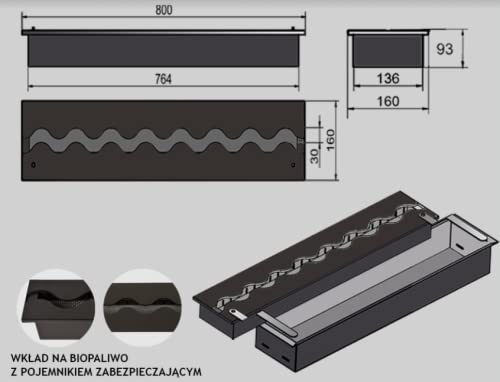 BRUCIATORE/INSERTO PER BIOCAMINO 80CM, CAPACITA 5,4L CON CONTENITORE DI SICUREZZA