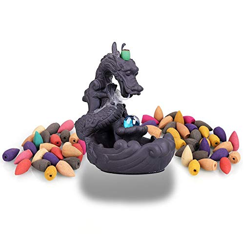 YYW Bruciatori di incenso a forma di drago a riflusso a cascata di incenso a forma di cascata, in ceramica, decorazione per la casa con 10 coni
