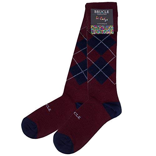 BRUCLE Calze uomo lunghe in caldo cotone, taglia unica 39-44, anallergiche, made in Italy, scozzesi blu bordeaux