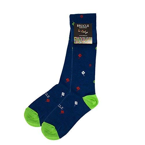 BRUCLE Calze uomo lunghe in caldo cotone, taglia unica 39-44, anallergiche, made in Italy, quadrifogli blu