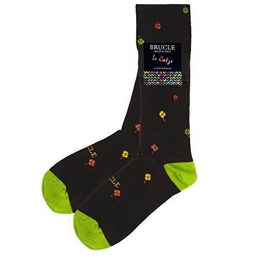 BRUCLE Calze uomo lunghe in caldo cotone, taglia unica 39-44, anallergiche, made in Italy, quadrifogli testa moro