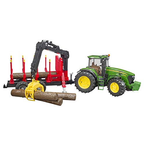 Bruder -BRUDER-3054-TRATTORE John Deere 7930 con RIMORCHIO FORESTIO E 4 ROTONDI DI Legno, 3054, Verde E Rosso