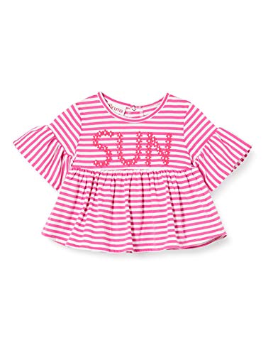 Brums T-Shirt Jersey Rigata con Paillettes Fiori, Multicolore (Bianco/Fucsia 01 906), 68 (Taglia Unica: 6M) Bimba