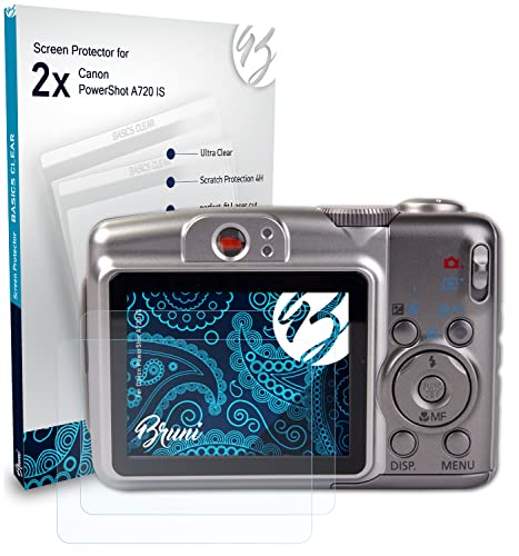 Bruni Pellicola Protettiva compatibile con Canon PowerShot A720 IS Pellicola Proteggi, cristallino Proteggi Schermo (2X)