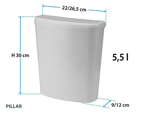 BRUNNER PILLAR - 7427021N, Cestino portarifiuti, Bianco, 5.5L, 22/26.5 x 9/12 x H30 cm