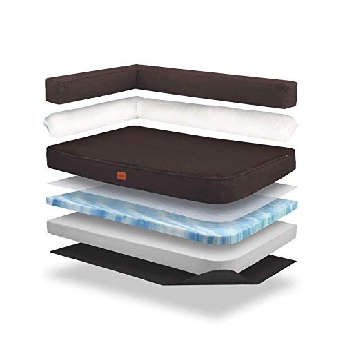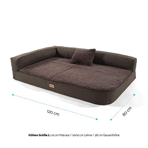 Brunolie Odin - Divanetto per Cani, Lavabile, Ortopedico e Antiscivolo, Cuscino per Cani con Schienale Rimovibile, Taglia L (120 x 80 x 12 cm), Marrone Scuro
