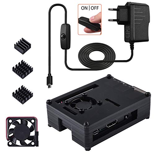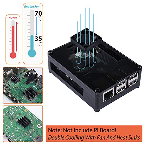 Sistema di raffreddamento: alloggiamento per Raspberry Pi 3 B + con silenziosa ventola + dissipatore di alluminio 3 pezzi (con corpo conduttore colla) migliorano la ventilazione in PU;