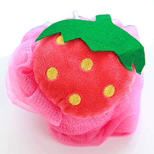 Brussels08 - Spugna per bagno e doccia, in morbida spugna, a forma di frutta, per bambini, adulti, per fare il bagno e fare il bagno alla fragola