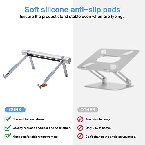 Supporto antiscivolo e stabile: cuscinetti antiscivolo in morbido silicone su molti punti del supporto per stabilizzare il laptop. Contatto diretto con il laptop per evitare graffi. Dopo aver aperto il fermo del piede anteriore di questo supporto per notebook, metti il tuo computer portatile più saldamente. Assicurarsi che il prodotto sia stabile anche quando si digita. Abbastanza resistente per sostenere fino a 4,5 kg.