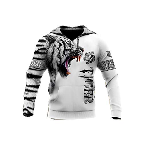BSDASH Felpe con Cappuccio Autunno Moda Felpa da Uomo Stampata in 3D in Pelle di Tigre Bianca Giacca Casual Unisex con Zip Hoodies S