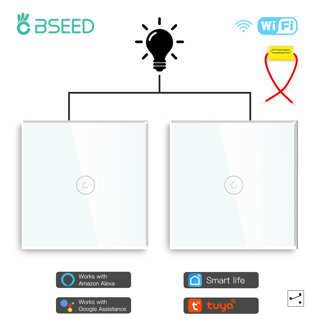 BSEED 1/2/3 Gang 1/2/3way Wifi Wall Switches 2Pcs Single Live Wire with Capactior Smart Touch Switches Blue Backligh Tuya APP