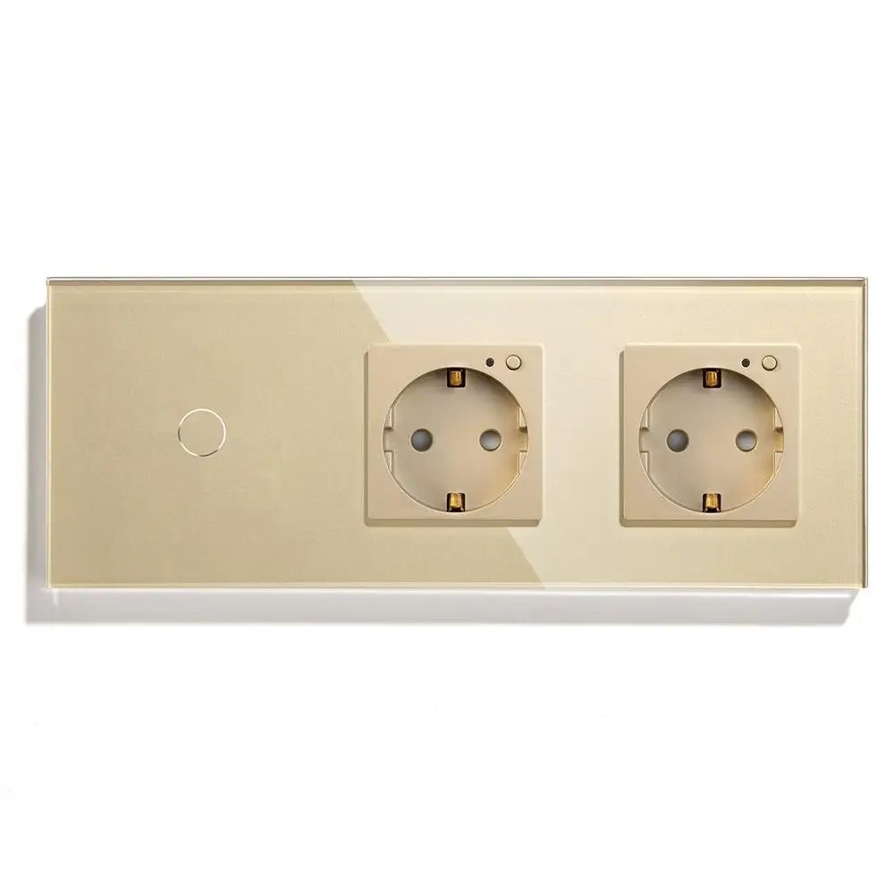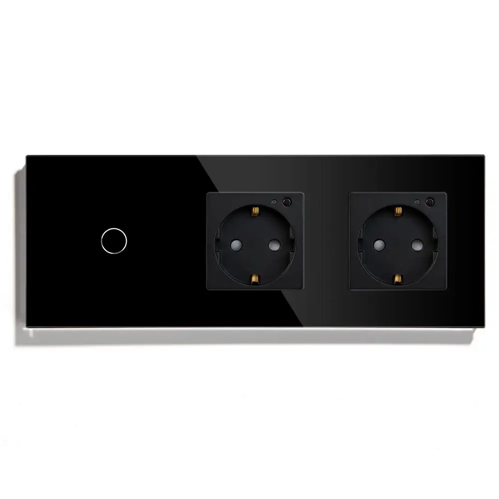 BSEED Double WiFi EU Sockets 1Gang 1Way Switch With White Black Gloden Crystal Glass Panel Control by Alexa Google, tuya