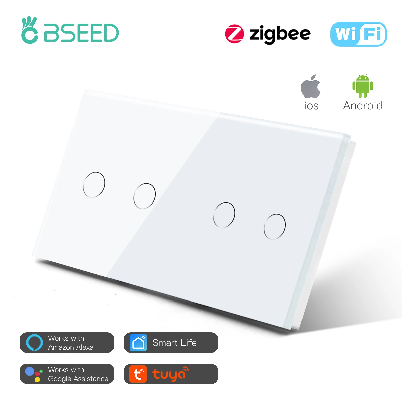BSEED New 4 Gang Zigbee Smart EU UK 157mm Touch Wifi Light Switch Glass Panel Smart Switches Alexa Smart Life Compatible
