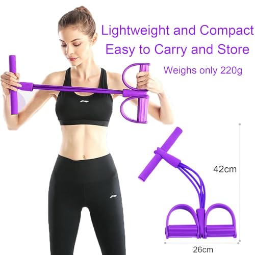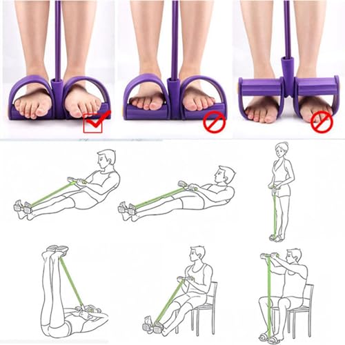 BSITSSS Corda elastica con 4 Tubi Attrezzi Palestra Casa,Elastico Sit Up Pull Rope Pedale Fascia di Resistenza con Manico,Allenatore addominale per Addome/Vita/Brase/Stretching Allenamento Dimagrante