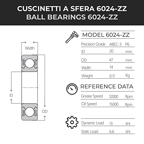Cuscinetti a sfera 6024-ZZ C3 in acciaio di lunga durata e silenziosi.