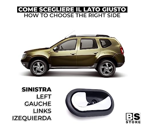 BSSTORE Maniglia Porta Interna Cromata Anteriore e Posteriore per D@cia Duster 2010-2017, Sandero 2008-2012 con Clip (Sinistra - Lato Conducente)