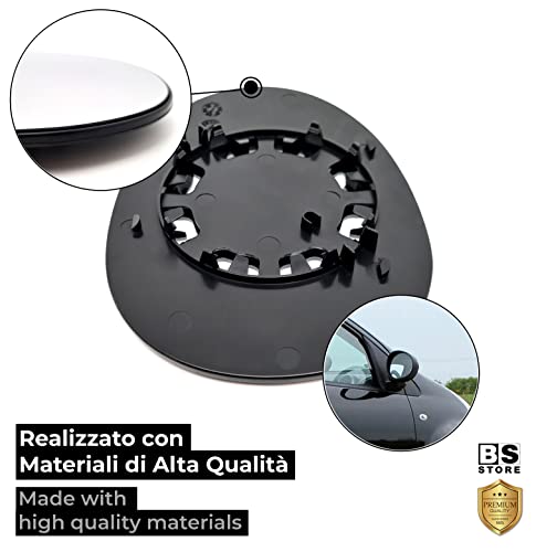 BSSTORE Piastra Vetro Specchio Retrovisore per Ty Aygo, Ctr C1, Pgt 107 dal 2005 al 2014 (Sinistra - Lato Conducente) 0062