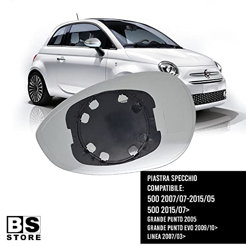 BSSTORE Piastra Vetro Specchio Retrovisore per Grande Punto 2005, Grande Punto EVO 2009, Linea 2007, 500 dal 2007 in poi (Sinistra - Lato Guida)