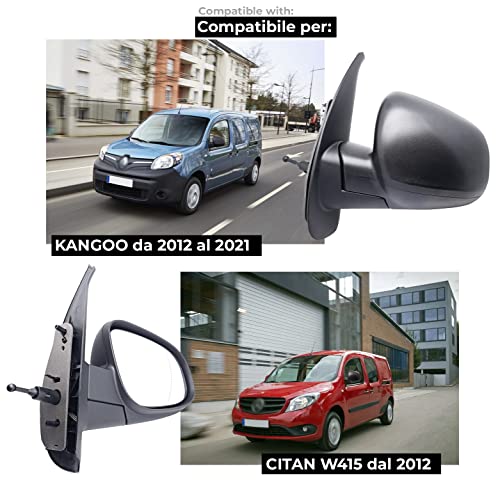 BSSTORE Specchietto Retrovisore Esterno per KANGOO dal 2013 al 2021 e CITAN W45 dal 2013 Completo con Regolazione Meccanica (Destro - Lato Passeggero)