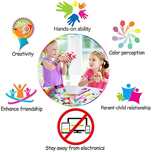 【SVILUPPA LA CREATIVITÀ DEI BAMBINI E LE CAPACITÀ A MANO】 Il set di produzione di braccialetti in gomma multicolore è un'attività giocattolo popolare per i bambini. Mescola e abbina diversi colori per creare qualcosa di completamente unico e personale. Questo divertente passatempo che migliora la creatività, la concentrazione e la coordinazione occhio-mano incoraggia i bambini a usare la loro immaginazione e a liberare la loro creatività.