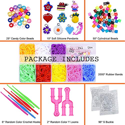 【Kit di strisce in gomma di LOOM fai da te LO 2000 * fascia di gomma, fibbia di 96 * s, 50 * perline cilindriche, 25 * perline di colore caramella, 10 * ciondolo in plastica morbida, 6 * piccoli hoots all'uncinetto, 2 * telai a Y, un kit completo di artigianato da tessitura è disponibile per i vostri braccialetti, accessori per capelli, collane, anelli e altri Accessori unici.