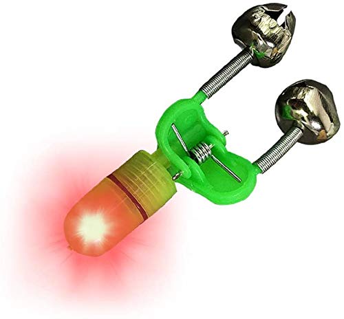 BSTCAR 20 Pezzi Luce Allarme Pesca, Pesca Allarme Luce LED Twin Bells Attrezzatura da Pesca Accessori per la Pesca Notturna Portatile Sea Fish Green Rod Clip Tip Fish Bait Alarm