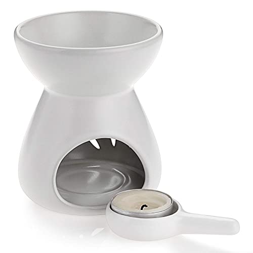 Bstkey Bruciatore di essenze e cera in ceramica, diffusore di aromi, decorativo, con cucchiaino per candela, per casa, ufficio, modello a imbuto (bianco)