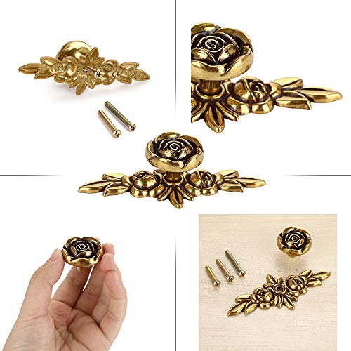 BSTKEY, 5 confezioni di manopole per cassetti con rose, maniglioni per armadio, armadio, guardaroba con piastra, pomello per mobili (100 mm, ottone antico)