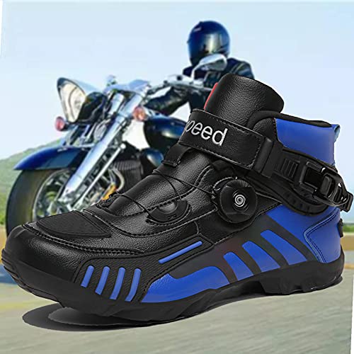 BSTL Stivali da Moto per Uomo Scarpe da Motociclista Scarpe da Motociclista Traspiranti Stivali da Moto da Donna Scarpe Impermeabili Sneaker con Fibbia Rotante,Blue-42