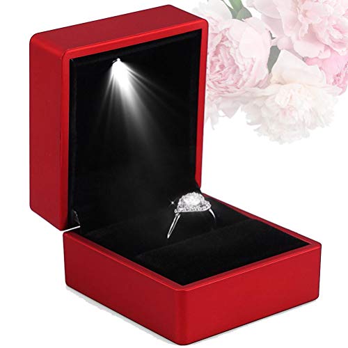 BSTOB Scatola per Anelli con Luce a LED, Scatola per Anelli illuminata Scatola per FEDI quadrate con Scatola Regalo di Gioielli per proposta di Matrimonio