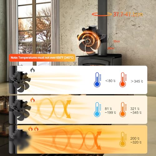 Qualità premium: il nostro ventilatore per stufa è realizzato in alluminio anodizzato di alta qualità, antiruggine e ha un'eccellente conduttività termica. Non si deforma o scolorisce, anche sotto alte temperature per lungo tempo. Il design rinforzato a 6 lame riduce la resistenza dell'aria del motore e migliora le prestazioni, prolungando la durata del motore.