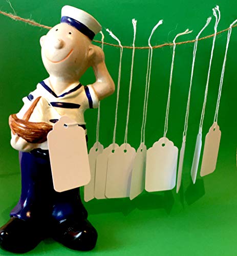 Qualità: un materiale di cartone offset di alta qualità (250 g/m²) bianco, molto adatto per il prezzo e la denominazione della merce, il filo (10 cm di lunghezza) è già annodato.