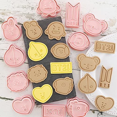 BT21 Set Di Formine,10PCS Biscotti Plastica Stampi Per Torte Natalizie Accessori Per Diy e 3D Bambini Torta Di Biscotti Fondente Di Dolci Di Pasticceria Per Cucina Decorazioni Biscotti