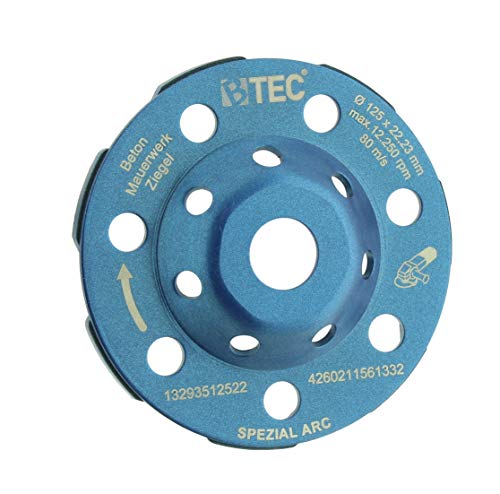 BTEC Twin Speed SPECIAL ARC - Smerigliatrice diamantata, 125 mm x 22,23 mm, disposizione speciale dei segmenti per massetto, residui di colla, pietra naturale, muratura, granito