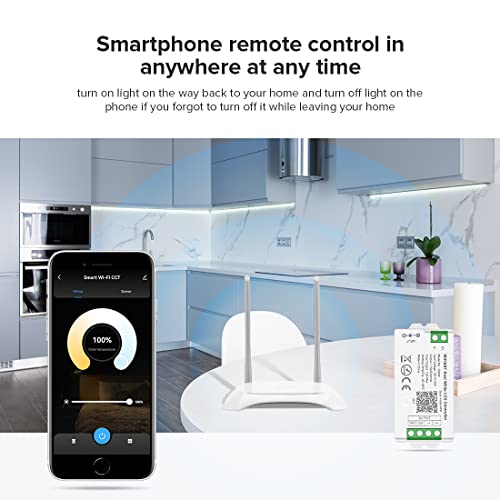 BTF-LIGHTING C02W CCT Striscia LED a temperatura di colore doppia bianca 2700K-6500K Controllore WiFi a 2,4 GHz Alexa Google Home Compatibile con WR02RF LM007 B2 FUT007 Mi-Boxer/Mi-Light CCT Remote