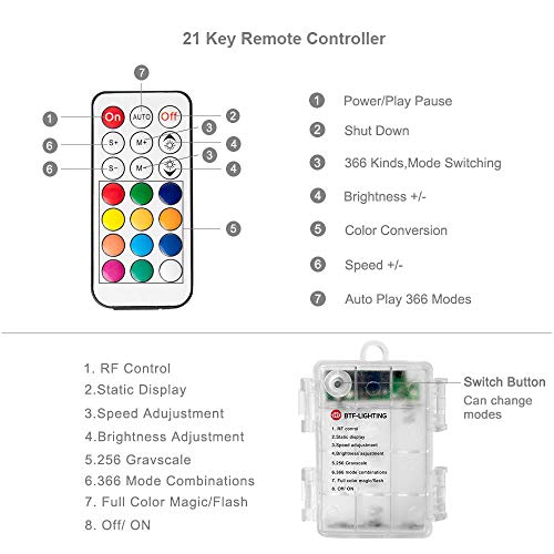 BTF-LIGHTING Chasing Dream Color Full Colour 5m 50LEDs Kit luci stringa fata indirizzabili, con telecomando RF 21 tasti + scatola batteria per luci natalizie decorative