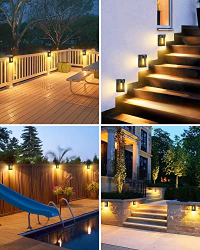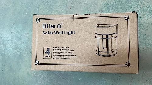 Btfarm 【4 Pezzi】 Luce Solare LED Esterno, Lampade da Parete Solari Impermeabili LED retrò per Recinzione da Giardino Patio Decking Cancello Decorazione Cortile (Bianco Caldo)