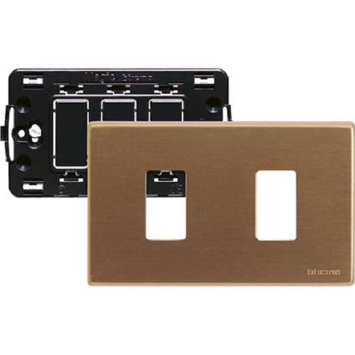 Bticino S503/12BS Magic Kit, Supporto e Placca, 2 Moduli, Alluminio Bronzo