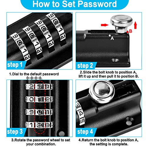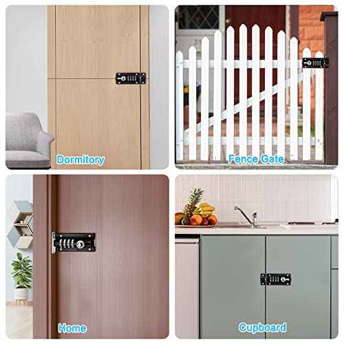 【Aggiorna la Sicurezza】Questo chiavistello a combinazione ricodificabile aggiunge una combinazione a 4 cifre alle normali serrature a chiavistello, consentendo di impostare fino a 10.000 password possibili, migliorando notevolmente la sicurezza e la privacy. La password predefinita è 0-0-0-0, non è necessaria alcuna chiave e non ci si deve preoccupare di perdere la chiave.