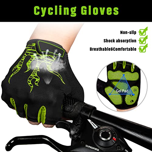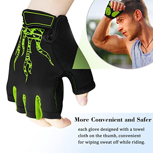 BTNEEU Guanti MTB Senza Dita Guanti Bici Gel Antiurto Antiscivolo, Mezze Dita Guanti Ciclismo Estivi Uomo Donna, Traspirante Guanti Sportivi Guanti Bicicletta per Outdoor Sport (Verde, XL)