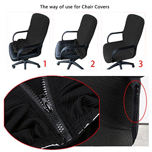 Btsky, coprisedia da ufficio in stile moderno, elasticizzato, rimovibile, resistente, per sedia girevole da ufficio con braccioli (sedia non inclusa), Black, large