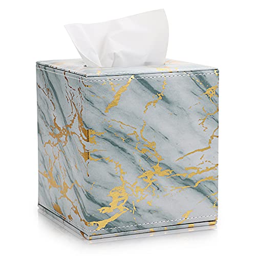 BTSKY Custodia in pelle PU per uso domestico e ufficio cubo di carta velina titolare della scatola della copertura del tovagliolo (marmo verde
