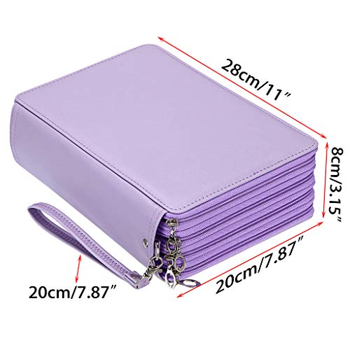 BTSKY Custodia in pelle PU per 200 matite colorate, molto capiente, multistrato, per studenti, organizer per cancelleria (senza matite), Viola, moderno